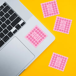 Vedenkestävä vinyylitarra. Tarttuu helposti mihin vain kovaan, sileään pintaan - vesipulloon, läppäriin, ompelukoneeseen, autoon tai vaikka matkalaukkuun.