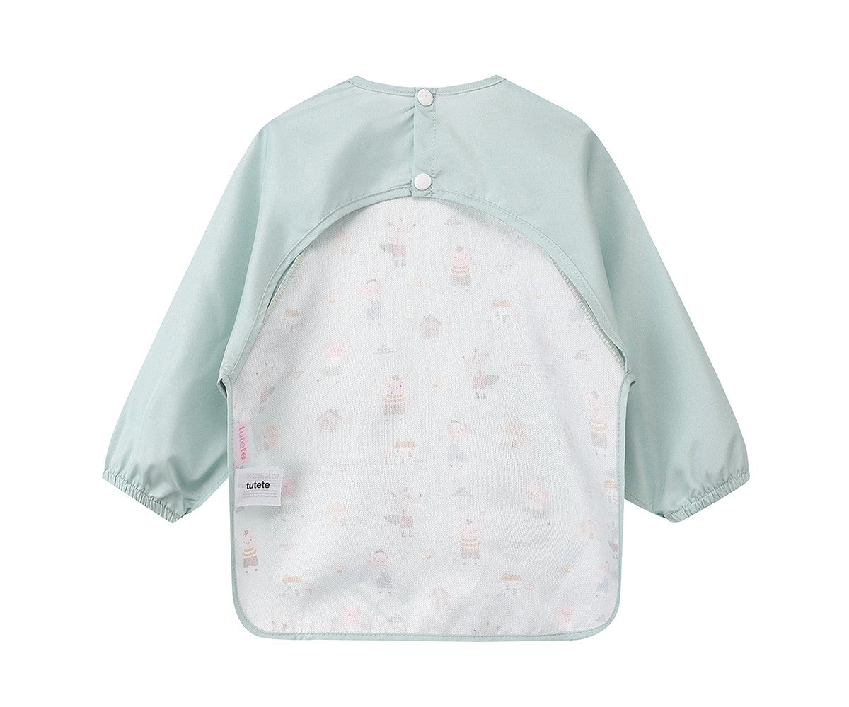 Ruokalapussa on takana nepparikiinnitys kahdella nepparilla. Pesu korkeintaan 30 asteessa. Suositeltu käyttöikä alkaen 6kk.