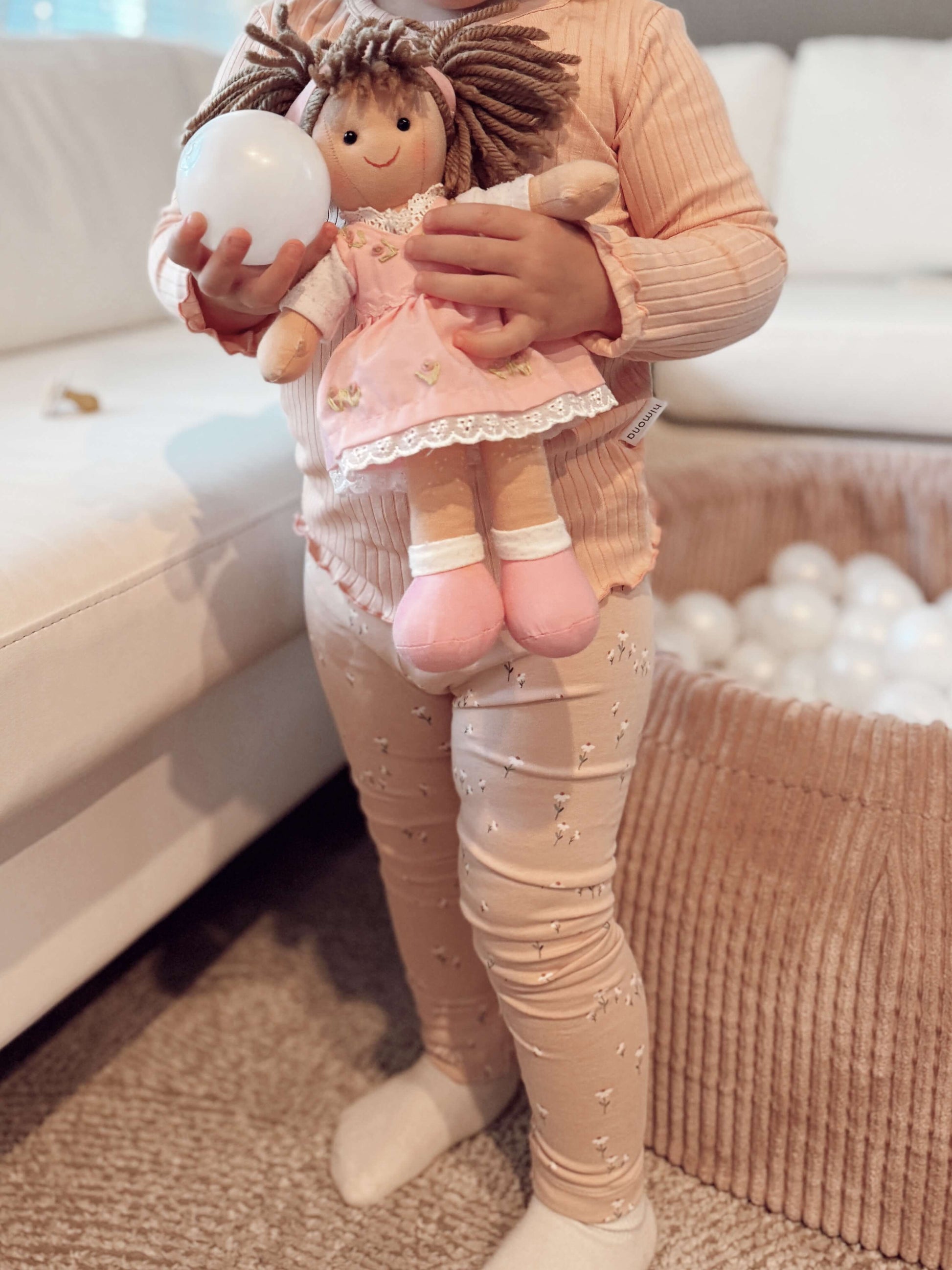 Leggingsit pehmeästä ja napakasta trikoosta tai joustavasta ribbitrikoosta. Malli on melko pitkä ja kapea. Ribbitrikoosta tehtynä lahkeensuut on käännettävät, tavallisesta trikoosta lahkeensuissa on käänne. Vyötäröllä super pehmeää kotimaista pehmokuminauhaa, joka ei purista pienenkään masua. Väri/kuosivalikoima vaihtelee.